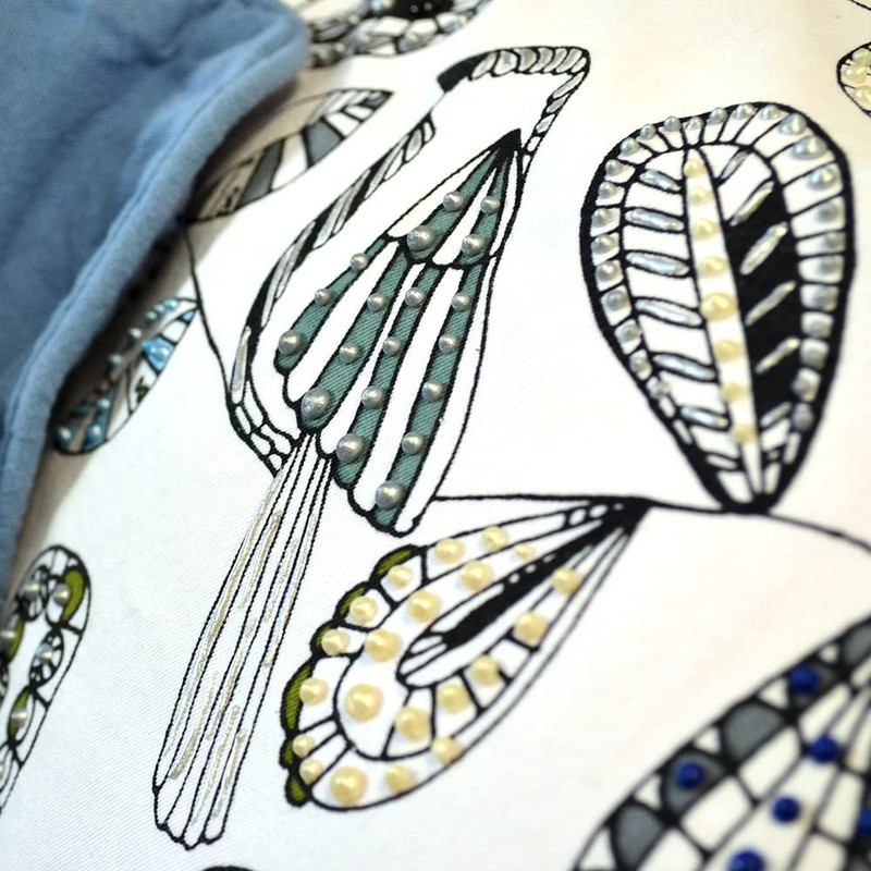 - Pearl pen – The Viva Decor Pearl Pen designs beautiful ornaments made of small and large beads. With these textile colours, textiles can be personalised and changed as desired. The size of the beads is easily and easily achieved by more or less pressure on the pen. Viva Decor offers a variety of impressive colours such as shimmering gold, emerald, black or the fabric colour green