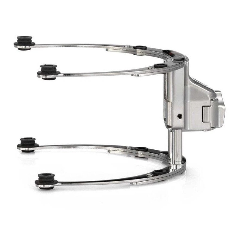 For the first time, totally unrestricted, fully uninhibited, tonally uncolored sound can be drawn from mounted toms with the Pearl R2 Air Tom Suspension System. Its exclusive four-point floating isolation platform was developed following a two-year research and development journey. By understanding that every drum's best mounting point is in the CENTER of each shell, mounting weight is equally balanced across two floating points at the top and bottom of each tom. This gives true tonal separation from mounting hardware and enhances sonic output.
