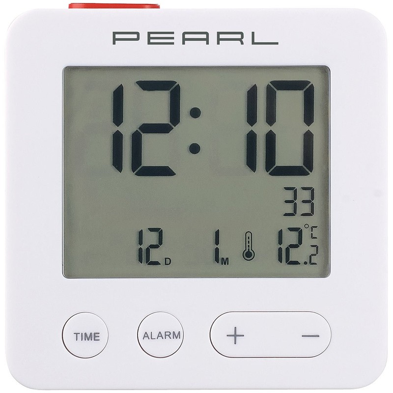 PEARL Reisefunkwecker: Digitaler Reise-Funk-Wecker mit Thermometer und beleuchtetem Display (Funkwecker Digital, LCD Funkwecker, batteriebetrieben)