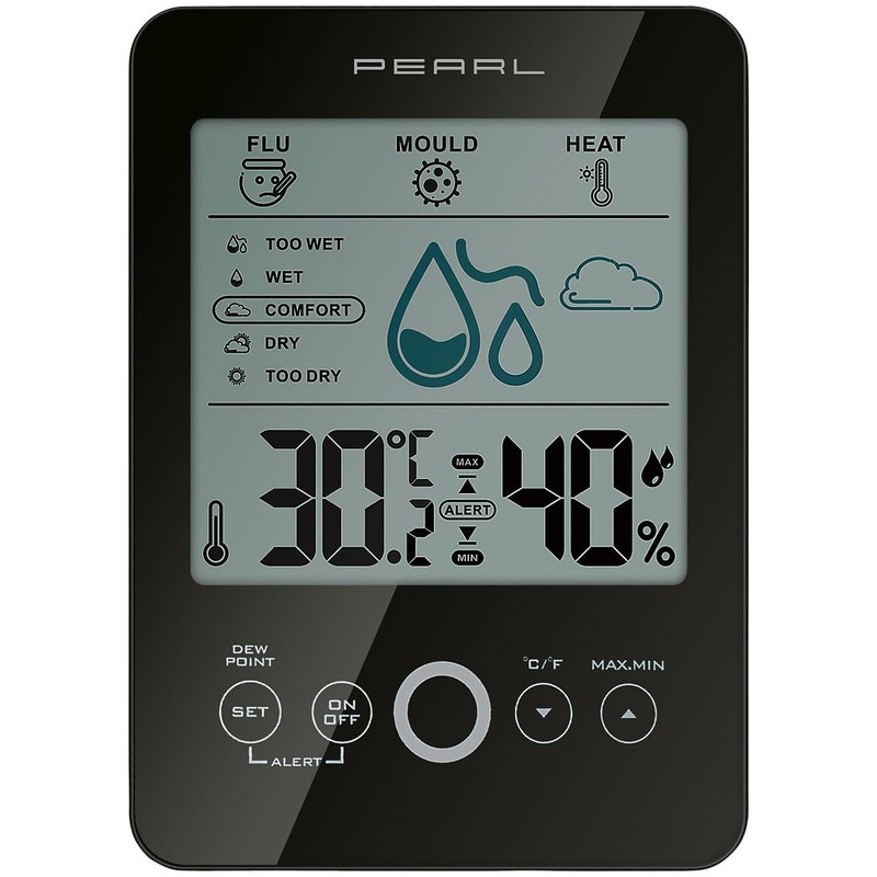 PEARL Room Thermometer: Digital Hygro/Thermometer with Mould Alarm & Comfort Display (Digital Thermometer Hygrometer, Hygrometer Mould, Moisture Meter Plants)