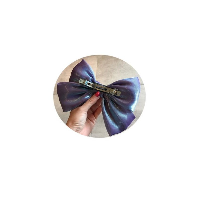 Pearl satin bow hair clip, back clip, top clip, hair accessory (Purple, One size)