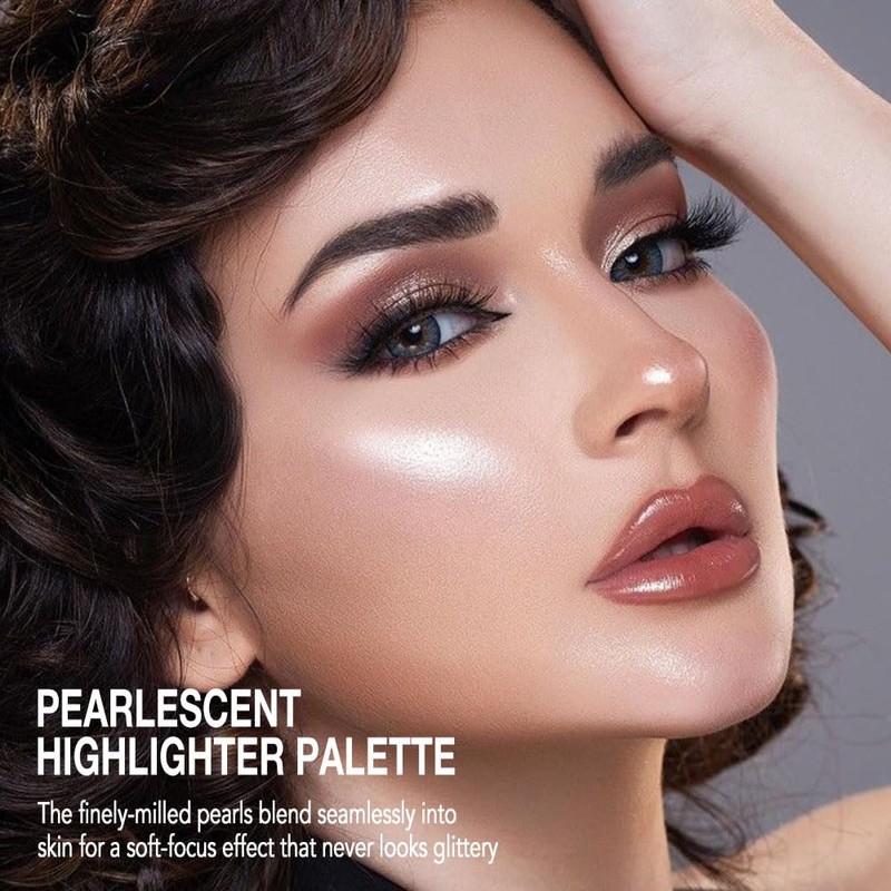 - 【Multi-use】Ideal for brightening cheekbones, eyelids, brow bones, inner corners and lip, with Light-diffusing pigments to enhance and perfect the skin, look great on any skin tone.Face highlighter&Face illuminator makeup palette.