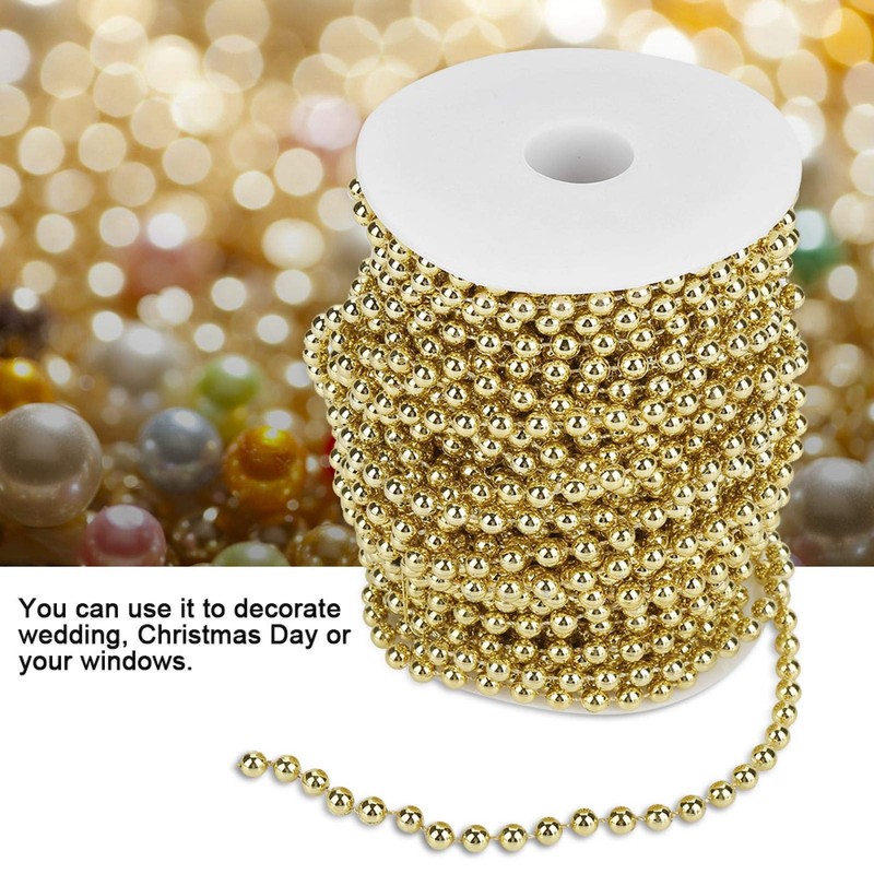 Pearl Wire Beads - 25 m Roll Galvanised Bead Wire Beads Garland String DIY Wedding Decoration 6 mm (Gold)