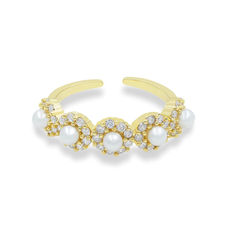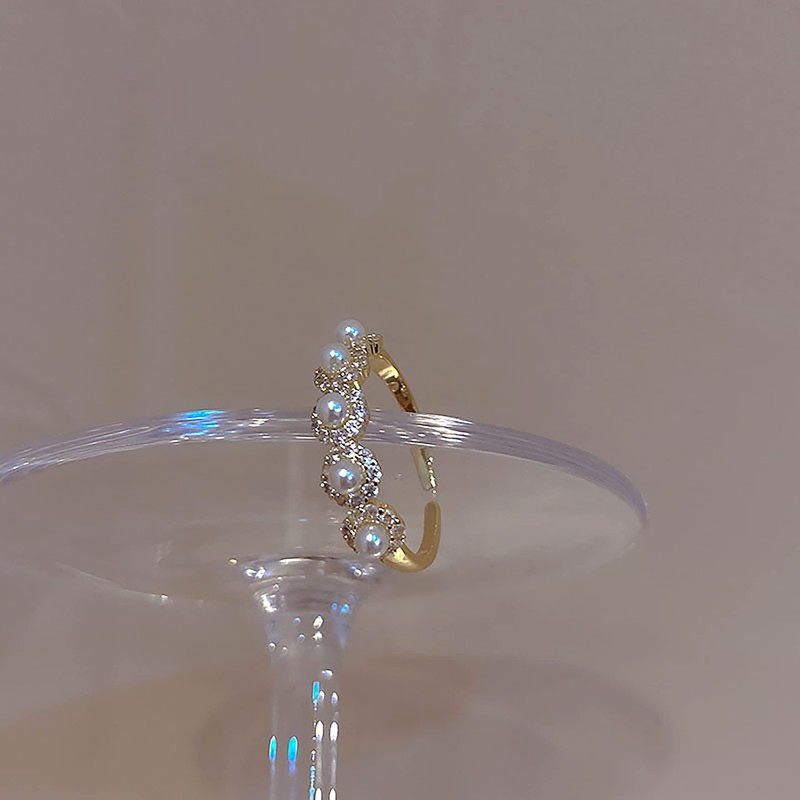 - Introducing our stunning pearl and zirconia dainty adjustable ring, a must-have addition to your jewelry collection! This delicate and elegant ring is crafted with high-quality materials, featuring a lustrous pearl and sparkling zirconia stones, all set in a sturdy and durable metal band.