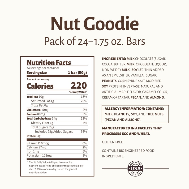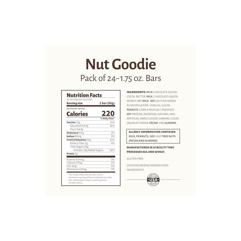 Pearson's Nut Goodie Cluster Bar | Roasted Peanuts, Real Milk Chocolate, and Maple Nougat | Pack of 24 | Individually Wrapped