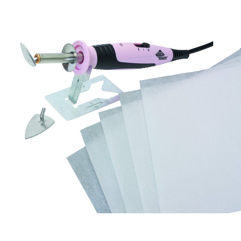 Box Contents: Mini support Air, 2 attachments Iron, Bondaweb non-woven (legs), 10 attachments with slot for round rhinestones, 2 attachments for various stone shapes and rivets, 576 with rhinestones White Color, 1 Tin rivets, storage brackets, instructions (cannot guarantee instructions are in English).