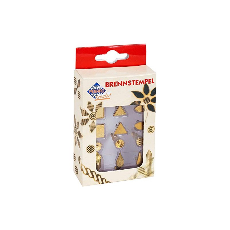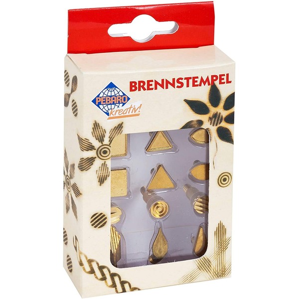 Pebaro 20300 Burning Stamp for Pyrography, Wood Burning, 12 Pieces, Made of Brass - Various Designs such as Drops, Circles etc. for Burning on Wood, Leather, Cork and Other Materials