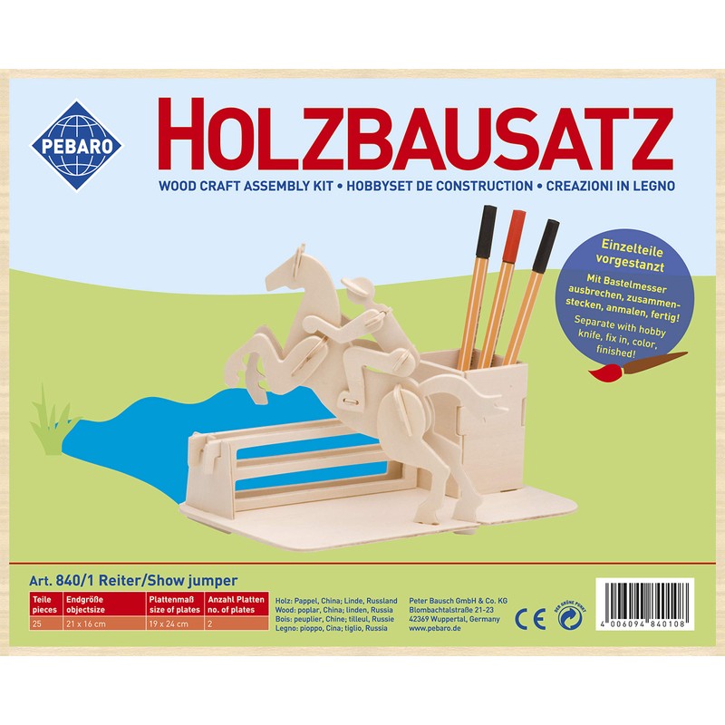 Pebaro 840/1 Wooden Kit, Table Stand, Pen Holder, Rider, 3D Puzzle, Model Kit, Crafts with Wood, Wooden Puzzle, Craft Set, Pre-Cut Wooden Board, Break Out, Put Together, Ready, Gift Idea