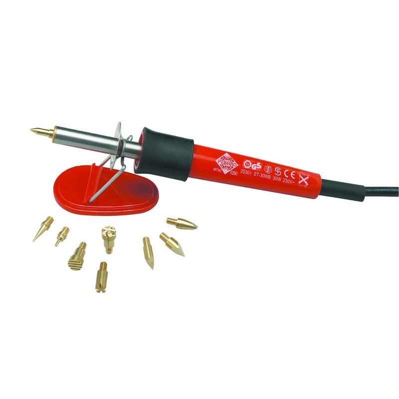 - Contents: pyrography piston, support brackets, 2 poplar plywood sheets DIN A5, 6 burning tips (item 20141-20146), 3 burning stamps (item 20161, 20162, 20166), emery paper, instructions for use