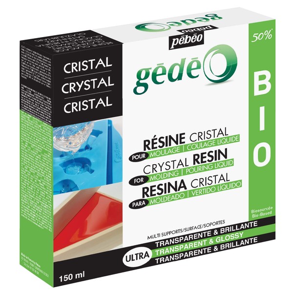 PEBEO Clear Liquid Kit-High Shine, Glossy Finish, Eco-Friendly Formula, for Casting Moulds, Table Tops, Crafting Supplies, 150 ml, Gedeo Bio Crystal Resin, Transparent