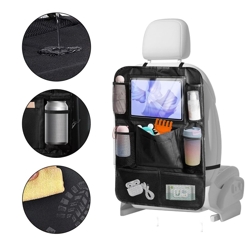 Pebipoo Waterproof Car Organiser Car Seat Organiser, Kids Toy Storag, Kick Mats Back Seat Protector with Tablet Holder,Foldable Durable Storage Bag for Travel (Black)
