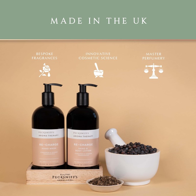 Pecksniff's Aroma:Therapy Re-Charge Duo Caddy, 500 ml/16.9 fl oz Hand Wash and 500 ml/16.9 fl oz Hand & Body Lotion