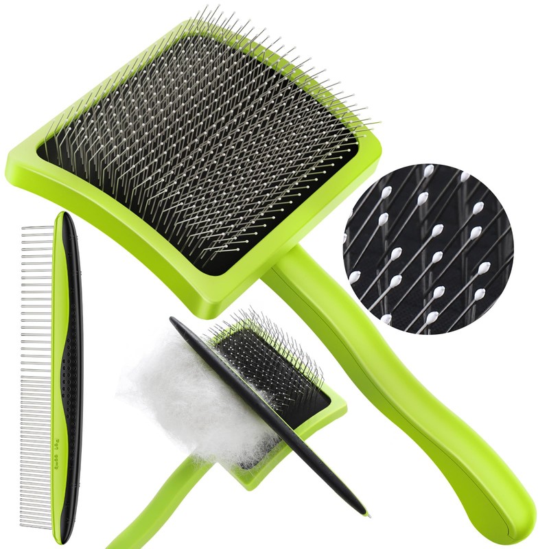 - Dual Pin Lengths (15mm/25mm): 15/25mm needle length selection to meet your pet partner's needs for combing tangled hair and removing stray hair. It is very suitable for small and medium-sized or long-haired dogs, such as Cockapoo, Poodle, Cavapoo, Golden Retriever, etc. Cats are also suitable for this cat grooming brush.