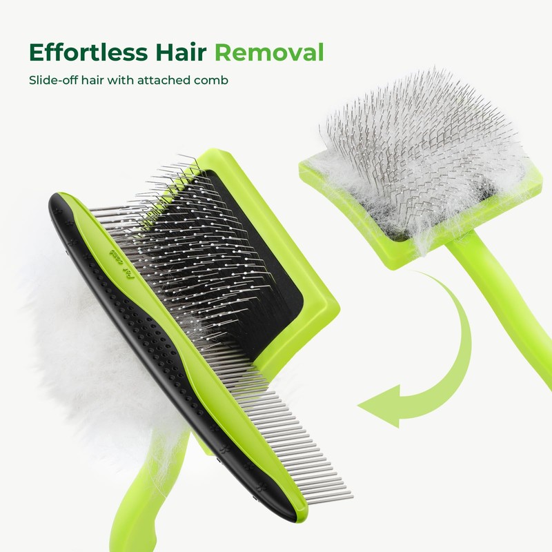 - Easy-Clean Design: The pet comb can easily remove the hair of the dog grooming brush, effortlessly remove trapped hair with a single swipe maintaining hygiene and readying the slicker dog brush for next use.
