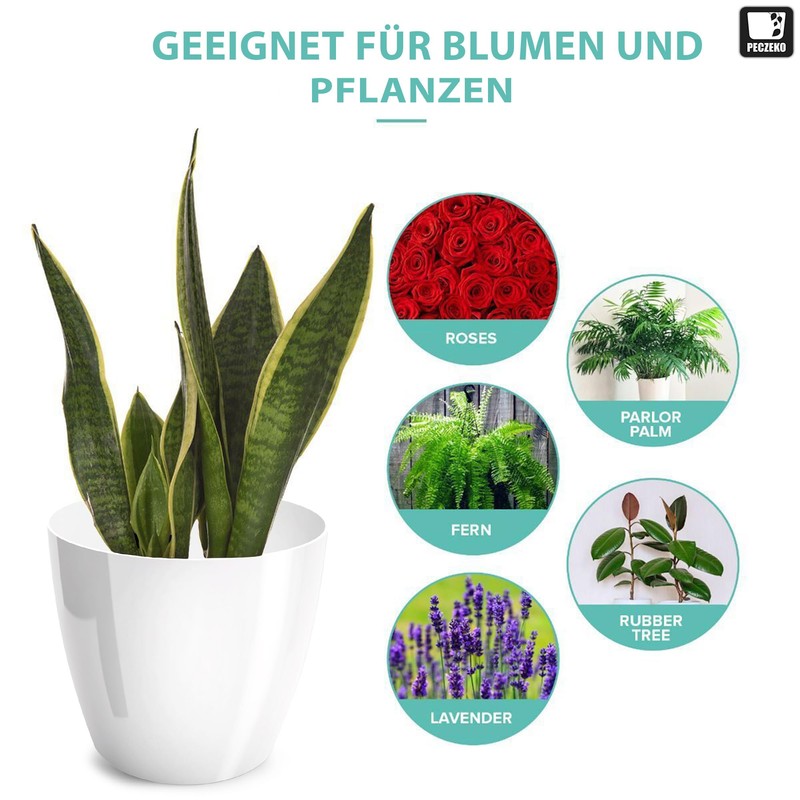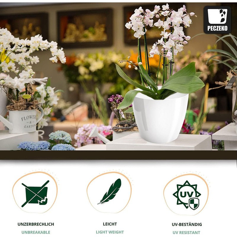 - High-quality construction planter is the perfect choice. Flower pots in various sizes, from 9.5, 12, 14, 16, 18, 20, 23 and 28 cm, the pots are made of lightweight and non-deformable plastic flower pot plastic flower pots. In addition, the pots are UV-resistant, which means they do not fade in the sun and retain their elegant appearance for a long time
