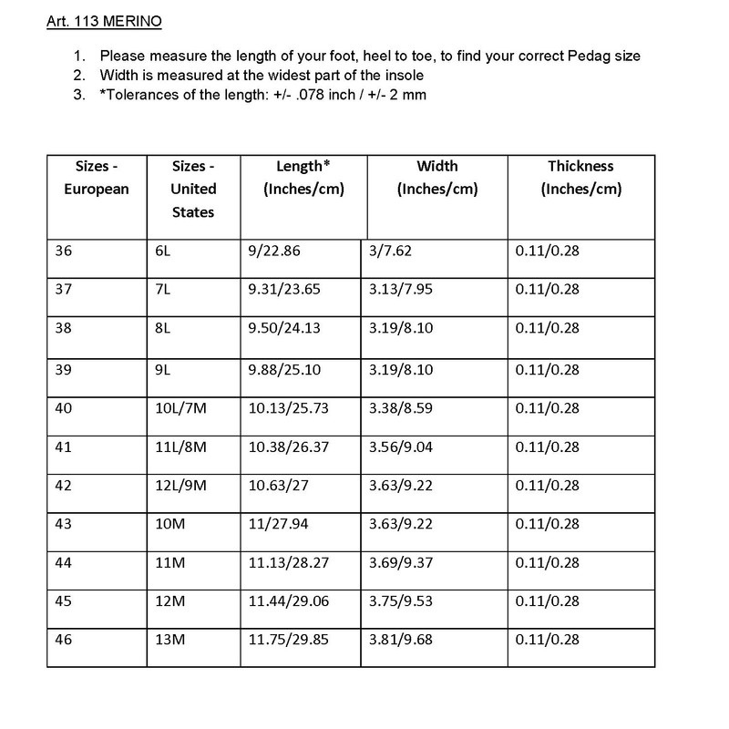 Pedag Angora Thin Flat Insole, US Men's Size 10, (European Size 43) by Pedag