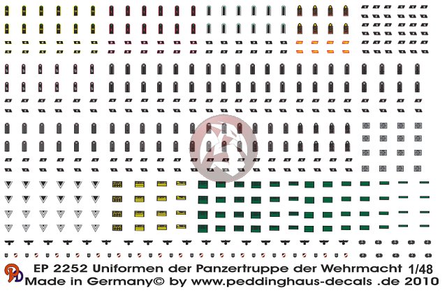 Peddinghaus Decals 1/48 German Wehrmacht Tank Troops Uniform Insignia WWII (for Normal Uniforms and Camouflages) 2252