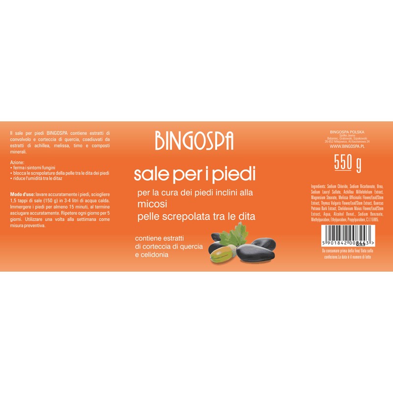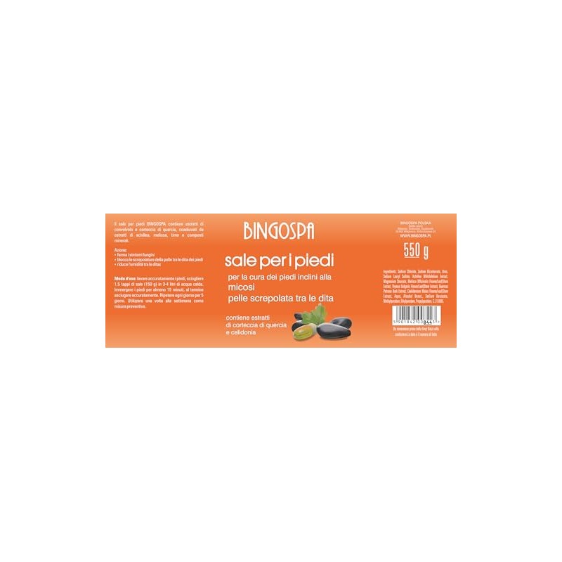 Pedi-Salz zur Pflege von zu Mykose neigenden Füßen und rissiger Haut zwischen den Zehen 550g BINGOSPA
