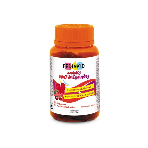 PEDIAKID GOMMES MULTIVITAMINEES 60 CHEWABLE GUMMIES, HELPS TO REDUCE FATIGUE AND SUPPORTS IMMUNE SYSTEM FUNCTION