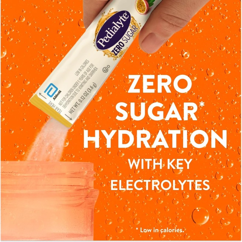 ELECTROLYTE DRINK MIX WITH ZERO SUGAR AND LOW IN CALORIES: Pedialyte Electrolyte Drink Mix With Zero Sugar powder packets help hydrate and have key electrolytes