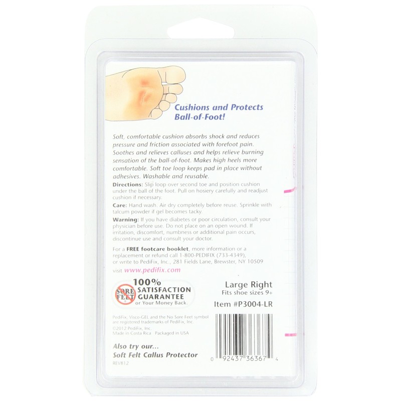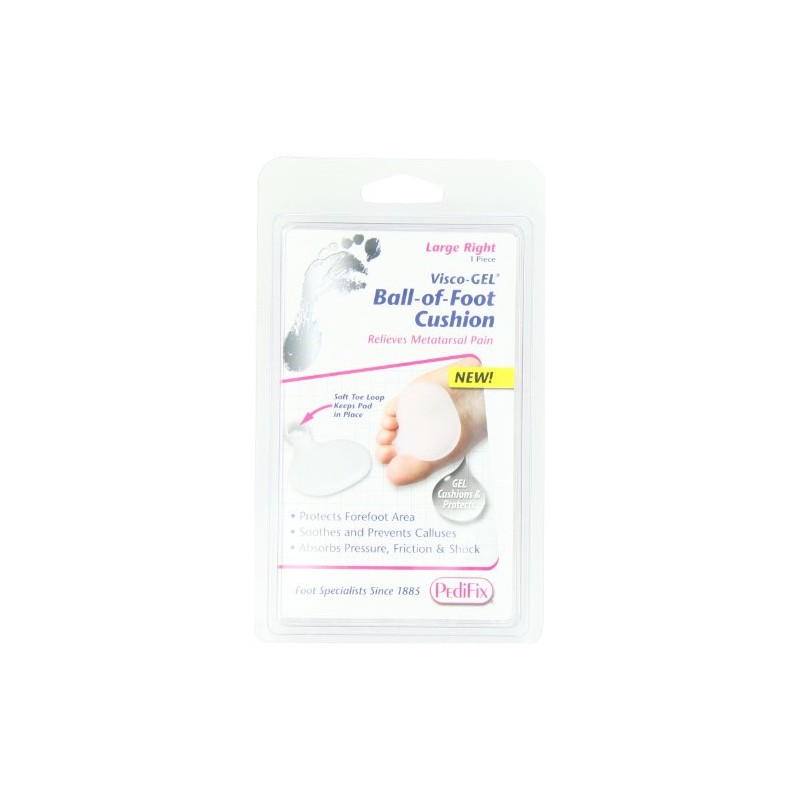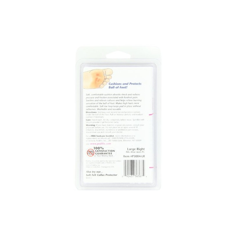 Soft, comfortable cushion absorbs shock and reduces pressure and friction associated with forefoot pain. Stretchable toe loop keeps pad in place.