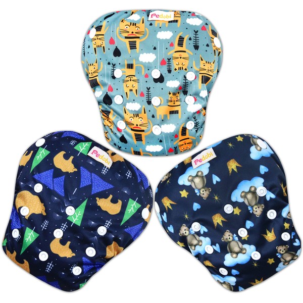 Pedobi Reusable Baby Swim Diapers, Adjustable Diaper Swim for Toddlers 9 Months - 3 Years Old, 3 Pack for Swimming Lessons (Bear, Large)