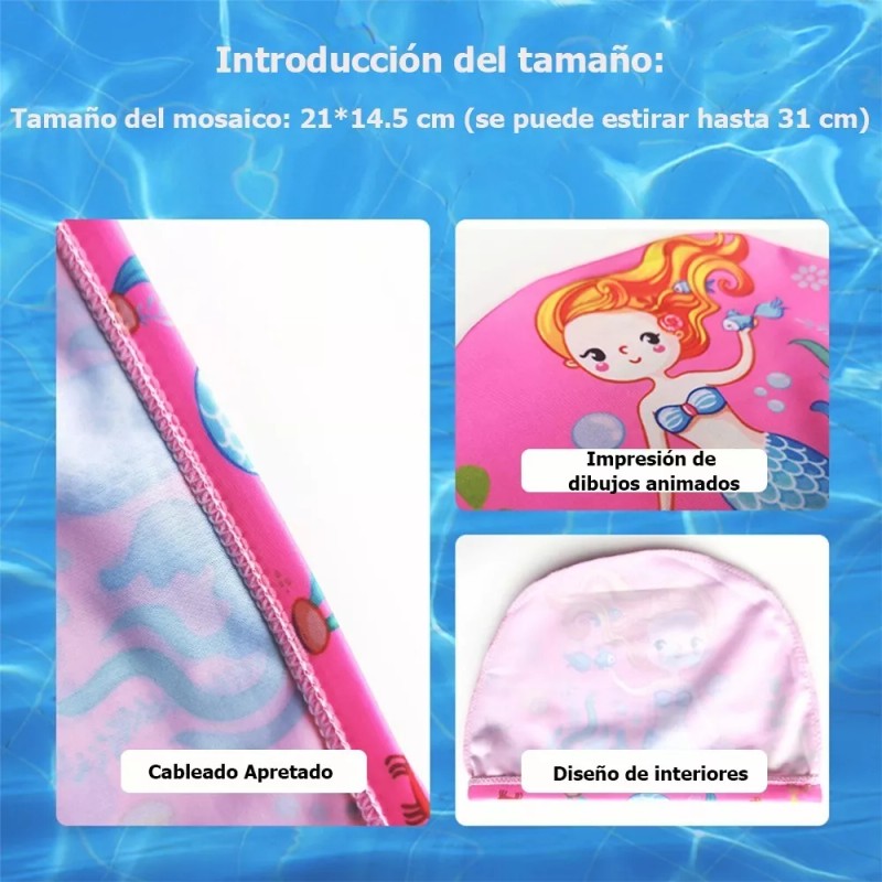 Dimensiones: Toalla de playa con capucha para niños de 60 x 120 cm. Estas toallas de baño y toallas de playa con capucha para bebés son lo suficientemente grandes para niños pequeños y niños en crecimiento (2-5 años). Baldosa de gorro de natación tamaño 21*14.5 cm (Máximo estirable a 31 cm)