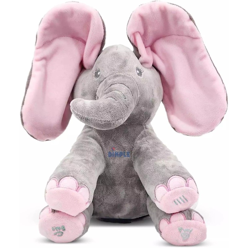 - Elephnat Stuffed Animal for Babies:The Dimple Baby Animated Stuffed Plush Singing Peek A Boo Elephant is a captivating Interactive Musical Toy designed specifically for toddlers. Its endearing peek-a-boo feature & moving ears entertain & engage little ones for hours. Plush Elephant has two exciting play modes that entertain and interact with your child for hours of fun! This adorable plush elephant engages children w/ its interactive peek-a-boo toy, entertaining them for hours. Its moving ears cover its eyes & play peek-a-boo, creating joyous moments for toddlers.