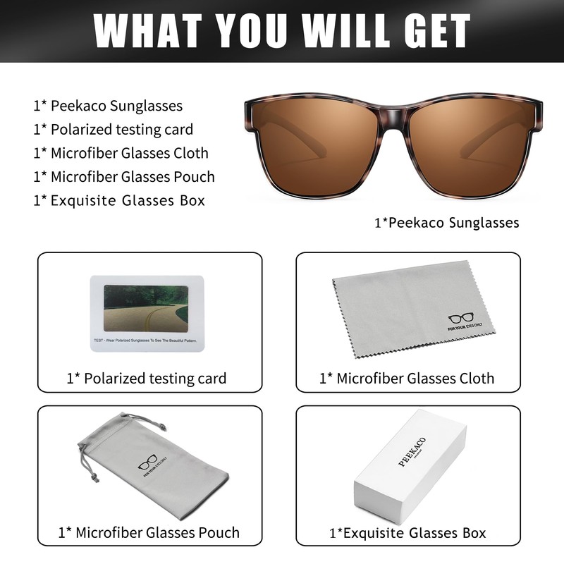 - Multi-Function Sunglasses Over Glasses: The Peekaco stylish sunglasses over glasses Men/Women are ideal for driving, fishing, climbing, motorcycle, trekking, or other outdoor activities. It is also gift ready, making it a wonderful suprise for friends and family.