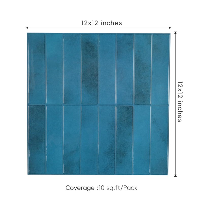 Peel and Stick Backsplash Tiles, 12" × 12" Agadir Blue 3D Adhesive Peel and Stick Wall Tiles for Kitchen Bathroom (10 Sheets)
