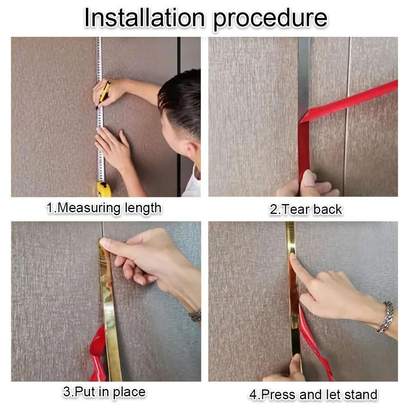 - ·【Easy to install】Beginner-friendly,everyone can quickly decorate.Only three simple steps are needed:cut,peel,and stick.It adheres easily,giving doors or walls an elegant finished look.