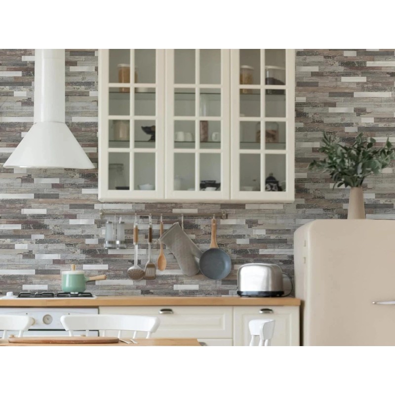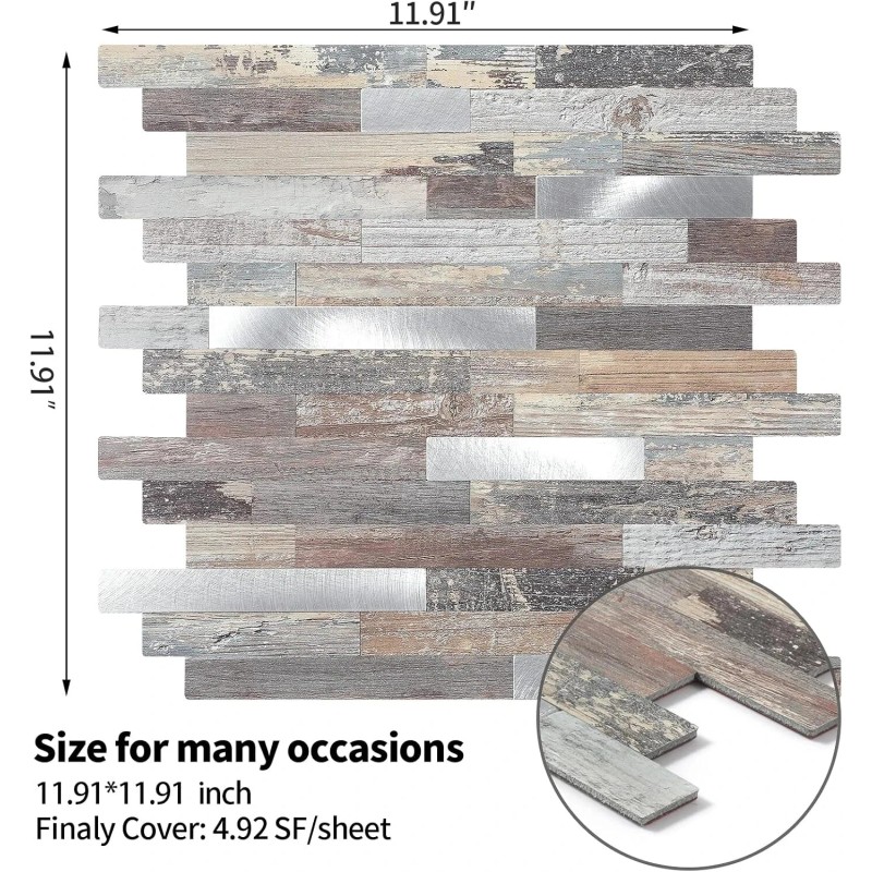Peel and Stick Wood Metal Tile Backsplash, Stick on Tiles for Backsplash Kitchen