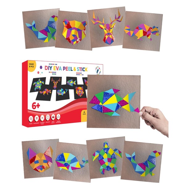 Peel & Stick - Makes 8pcs - Mosaic Art & Crafts for Kids 6 & Up -EVA Foam Crafts for Kids - DIY Kids Crafts Kits -Boys & Girl Crafts - Mosaic Crafts for Kids - Boys & Girls Arts and Crafts Age 6-8
