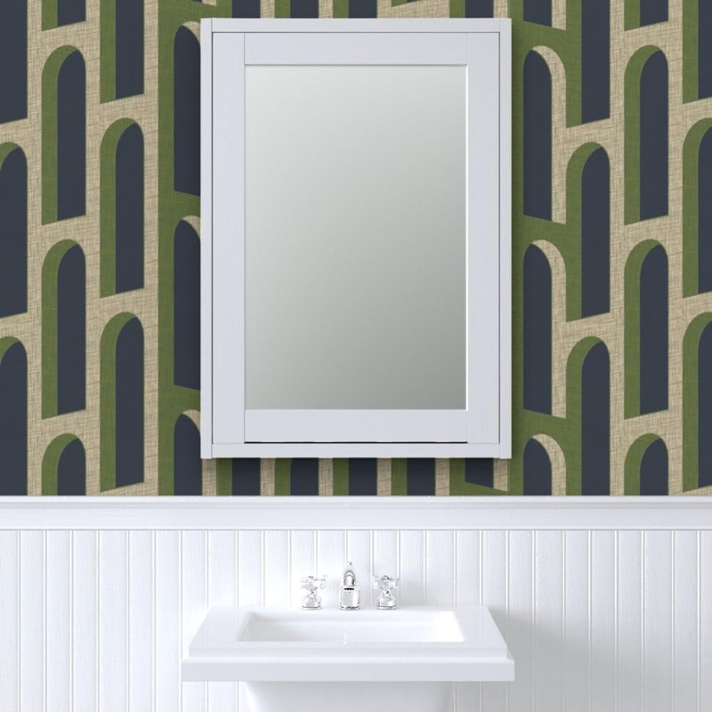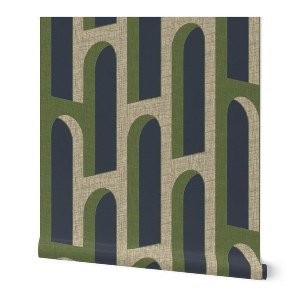Peel & Stick Wallpaper 9ft x 2ft - Modern Abstract,Architecture,Bridge,Arches,Roman,Beige tan,Avocado Green Custom Removable Wallpaper by Spoonflower