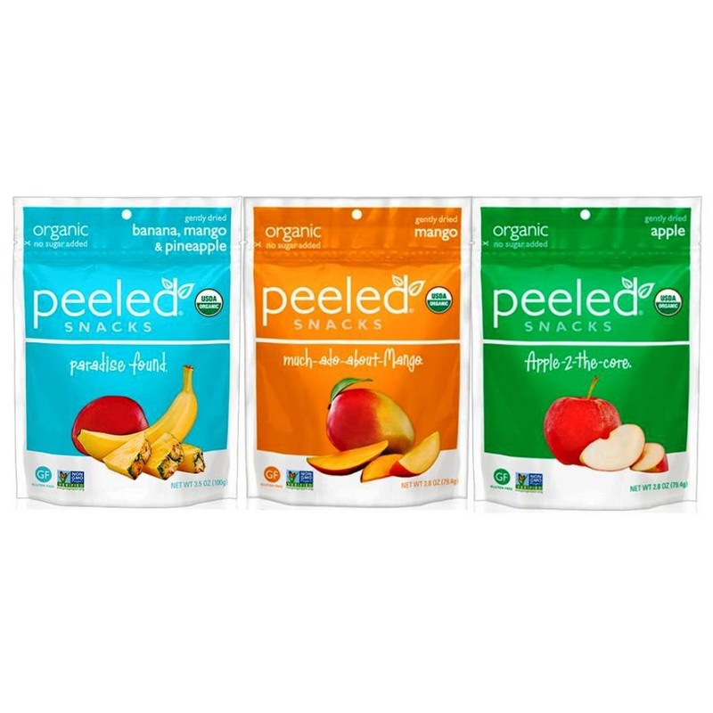 Peeled Organic Non-GMO Dried Fruit Snack Variety Bundle, (1) each: Banana/Mango/Pineapple, Mango, Apple - 2.8 Oz. Ea.