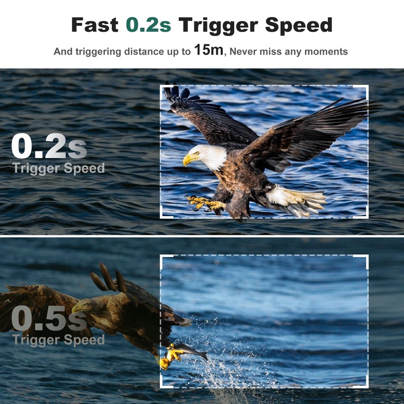 • 【0.2s Fast Trigger within 15M Distance】Pefemnio Hunting Camera can be triggered within 0.2S & 15 Meter, promptly waking up the WiFi camera to capture the perfect moment in photos. And then the WiFi function will send the instant alerts to you to watch this Exciting Moments in time.