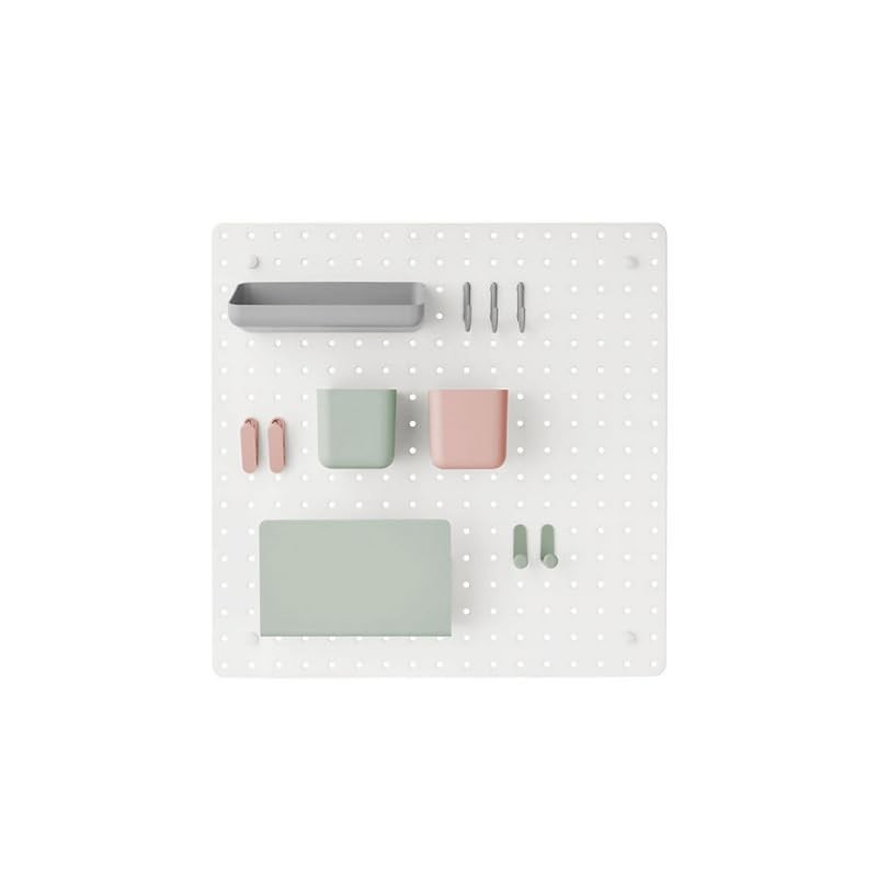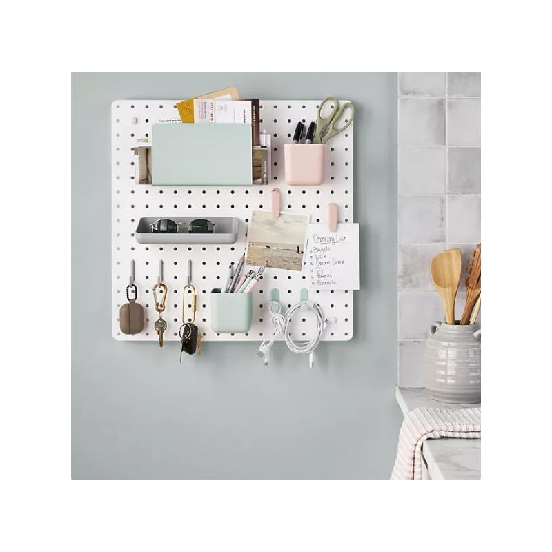 - COMPLETE SET: 12-piece wall organization system includes 1 white pegboard and 11 versatile accessories for customizable storage solutions
