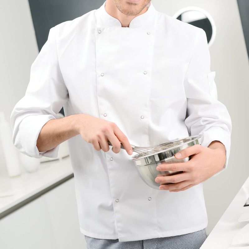 - STYLE: This stylish unisex design features a mandarin collar, metal press stud fastenings and long sleeves for added protection