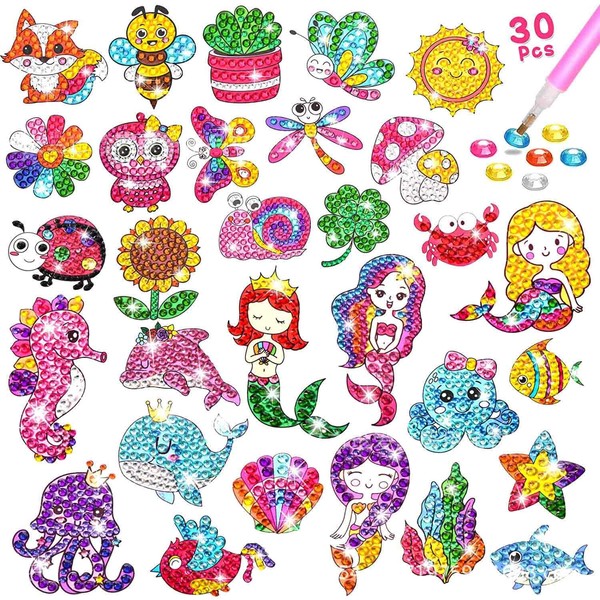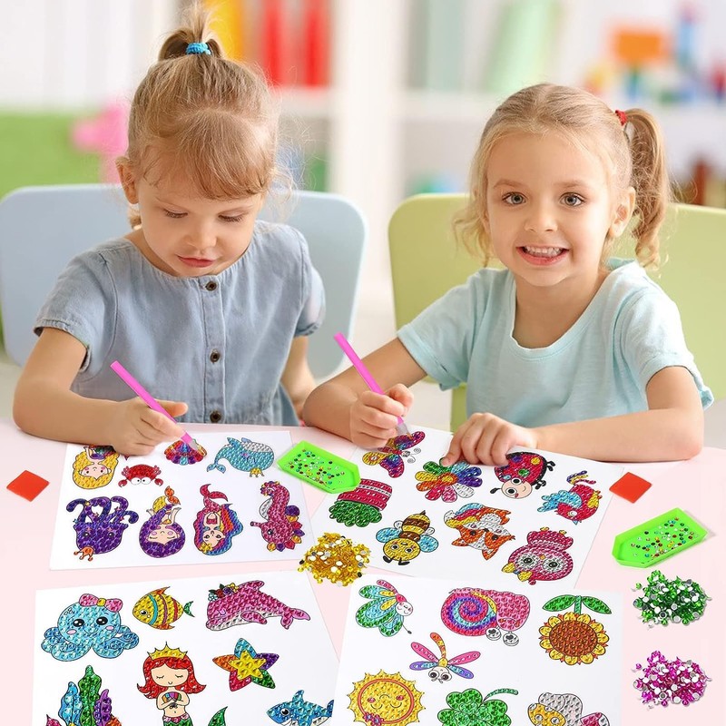 Pegatinas de pintura de diamantes para niños con herramientas de pintura de bricolaje, kit de pintura de diamantes para niños, lindas manualidades/regalos para niñas y niños (4-12 años)