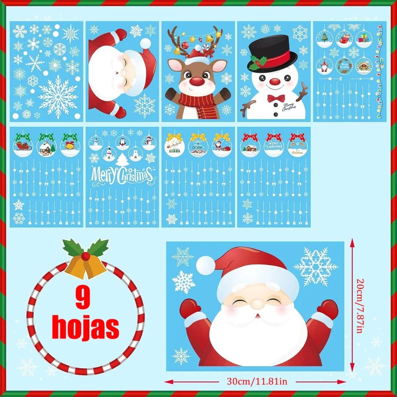 Calcomanías Navideñas para Ventanas incluyen: Recibirás 9 hojas de calcomanías navideñas con varios tamaños de copos de nieve. ¡Pueden iluminar cualquier ventana, tanto por dentro como por fuera, en esta temporada festiva!