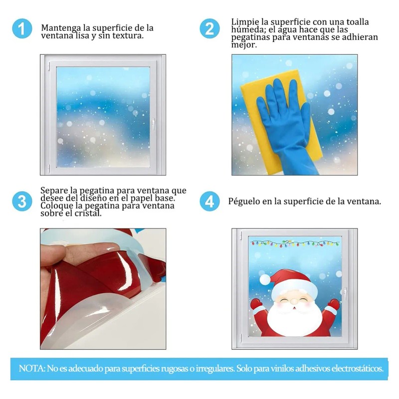 Colores Brillantes, Calidad Perfecta: Las calcomanías navideñas utilizan tecnología de impresión avanzada, con colores vibrantes. ¡Los adorables Santas y renos añaden un ambiente navideño único! (CONSEJO: ¡NO usan adhesivo! ¡NO dañan superficies!).