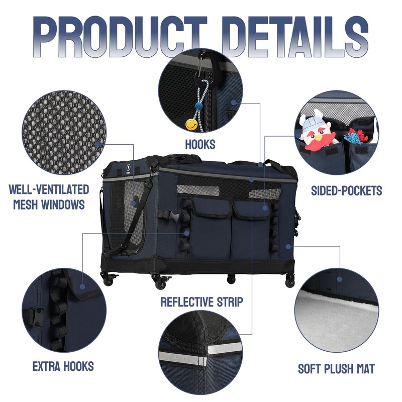 - 【ROOMY TO REST AND PLAY IN】It is roomy enough to allow your dog to stretch out comfortably during travel or downtime at home. It can be used as an indoor pet house or an outdoor dog crate. The soft dog crate (without wheels) measures 30x21x21in and is suitable for pets up to 44lbs.
