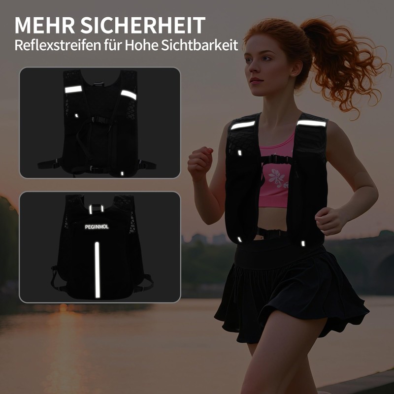 • Safety thanks to reflective strips: front and back reflectors increase visibility at dusk or night runs. The Peginmol running vest makes you clearly visible even in low light conditions - for more safety in outdoor use