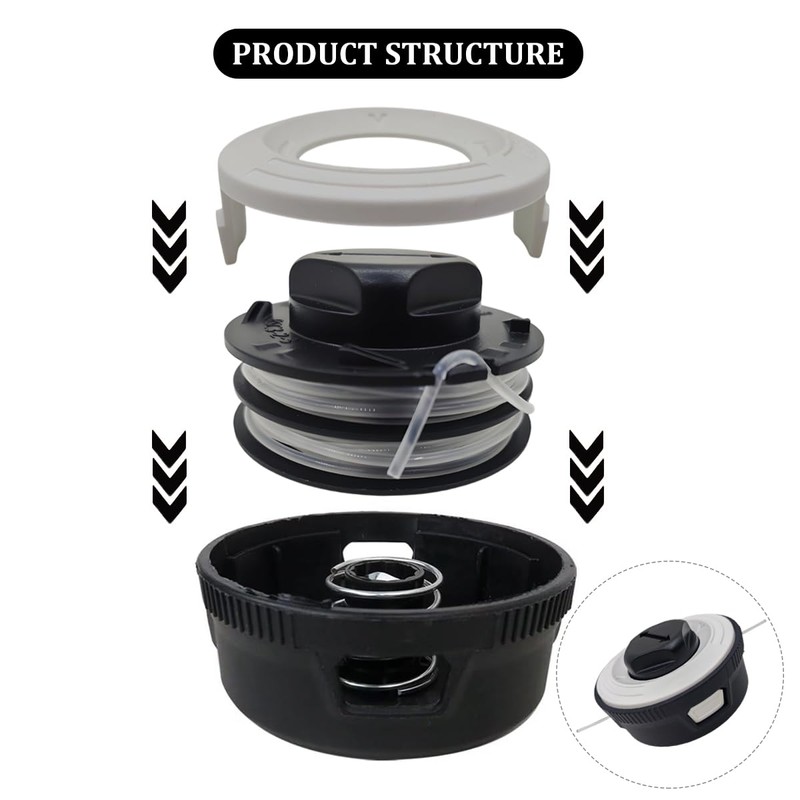 - 【Package Includes】Total 6-Pack: 4 x string trimmer spool + 1 x 304 stainless steel spring + 1 x base cove cap