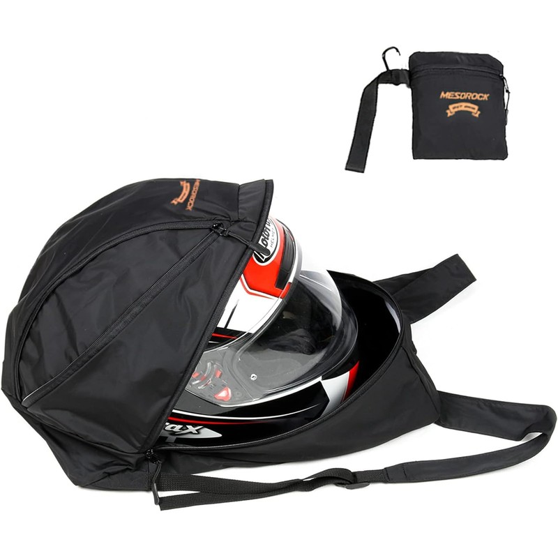 - LARGE CAPACITY MOTORCYCLE HELMET BAG - The folded size is 5.9x6.3 inches, includes a carabiner to attach to clutch cables, grips, etc. You can also be placed on your belt loop motorcycle or bicycle. The unfolded size is 11x18.1 inches. You can expand it to be used as a motorcycle helmet backpack, or not expand it for daily use as a backpack.