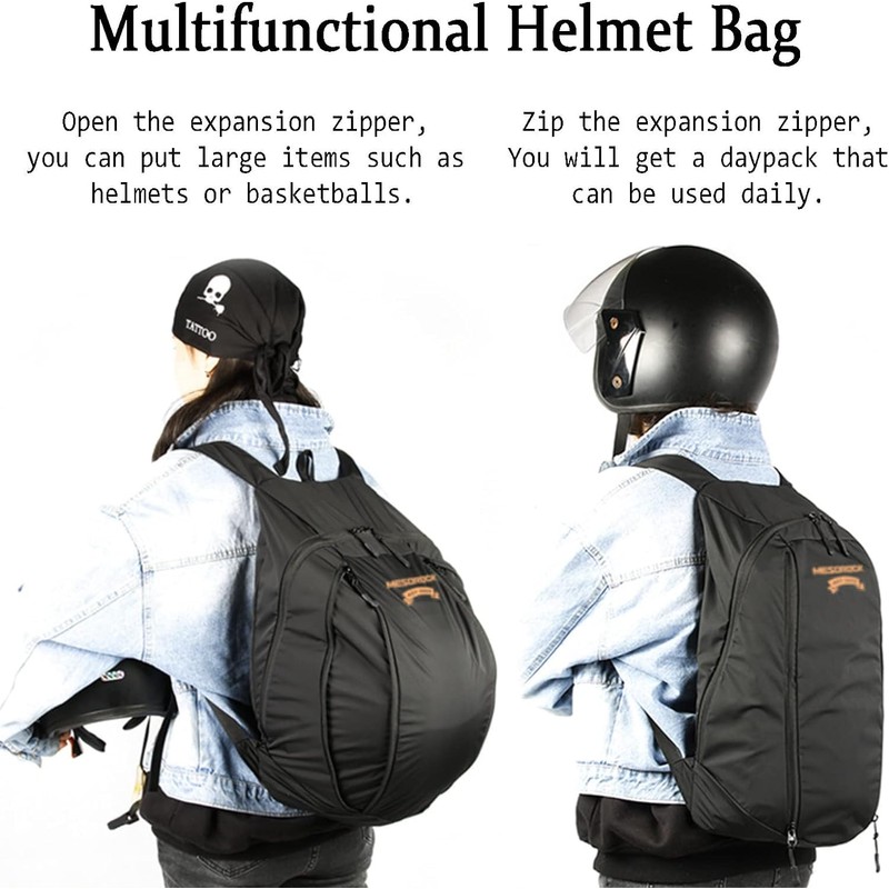 - EXPANDABLE HELMET BAG - This amazing travel foldable backpack can hold medium items such as bicycle helmets and laptops before being expanded. After opening the extensions zipper on both sides of the backpack, you can easily install large items such as full-face motorcycle helmets, basketballs, etc. so that you can carry the helmet with you without worrying about leaving it on the motorcycle or bike.