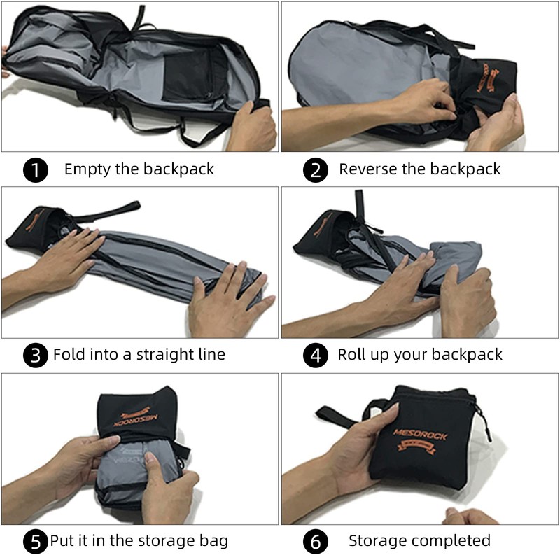 - CONVENIENT PACKABLE BACKPACK - Usually you can hang the folding backpack on your belt, motorcycle, or bicycle. When you need to load things, you can unfold the backpack at any time and get a large-capacity backpack right away.