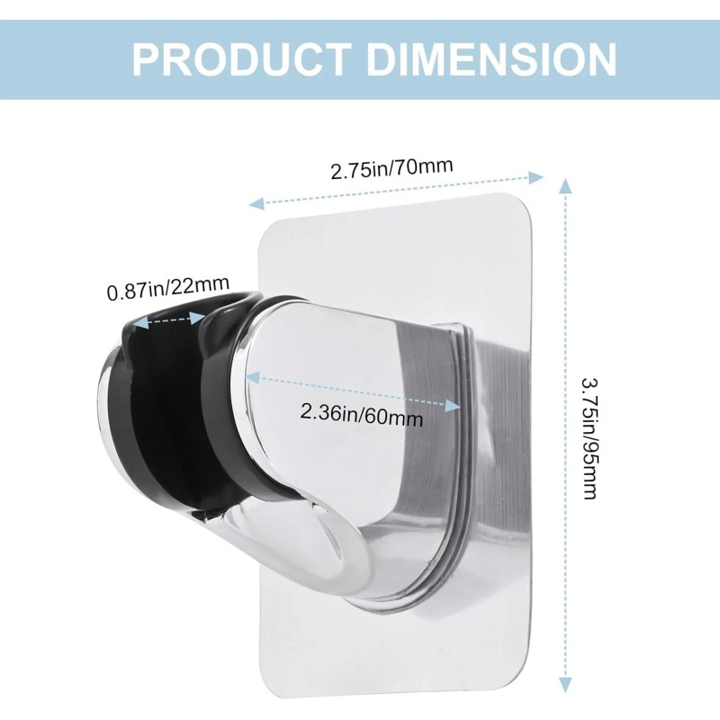 - Strong Adhesive: This shower head holder has a large area of adhesive sticker, also has stronger adsorption capacity and bearing capacity. Waterproof and moisture-proof, long-term use in a wet and water environment will not fall off.