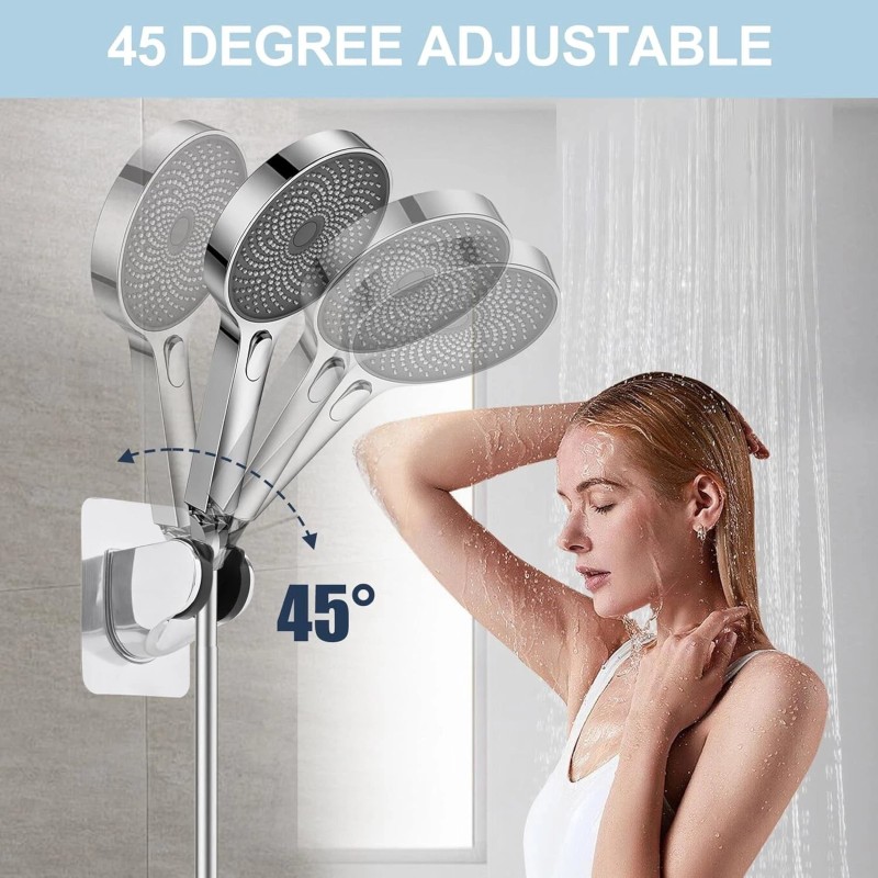 - Adjustable Design: The hand held shower head holder can be adjusted up and down 45°, you can adjusted it as needed in the shower, and it can holds different style shower heads. To enjoy bathing from more angles.