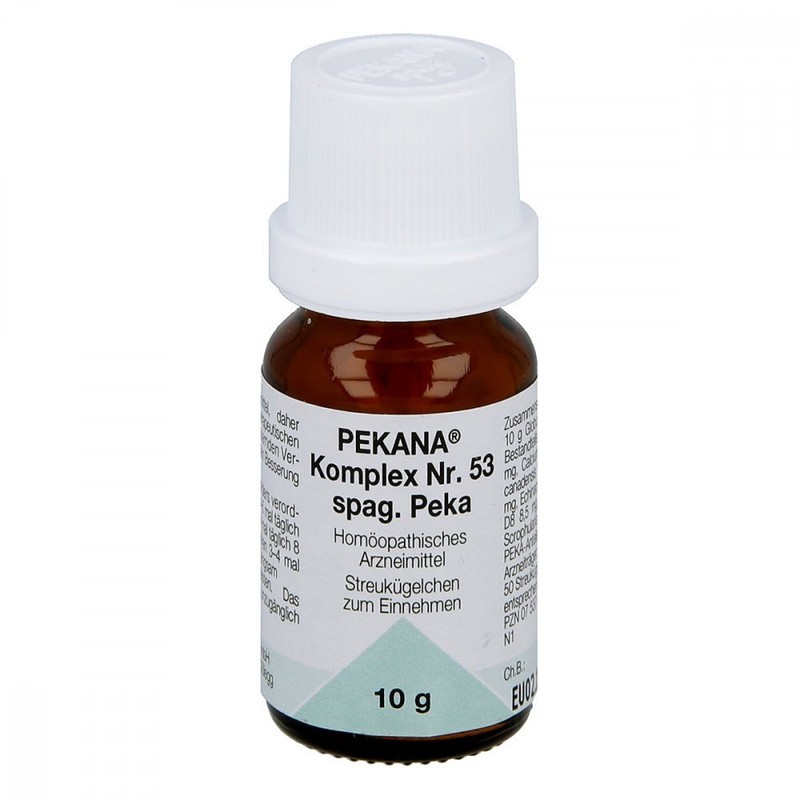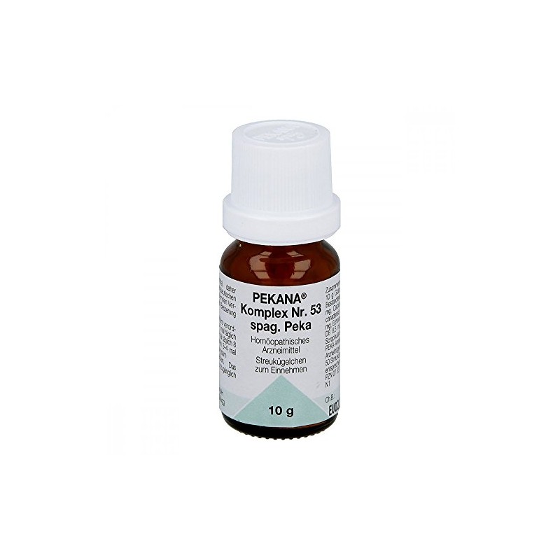 Pecana Complex No. 53 SPAG. PEKA, STREUK GELCHEN. Areas of application: registered hom opathic medicine, therefore without indication of therapeutic indication.